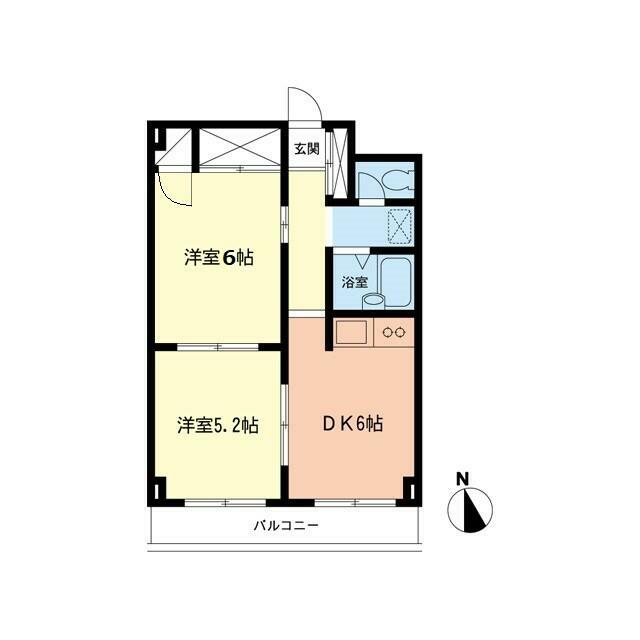 | 間取り | 2DK(洋室5.5畳/洋室6.2畳/DK6.8畳) | 主要採光面 | 南 |